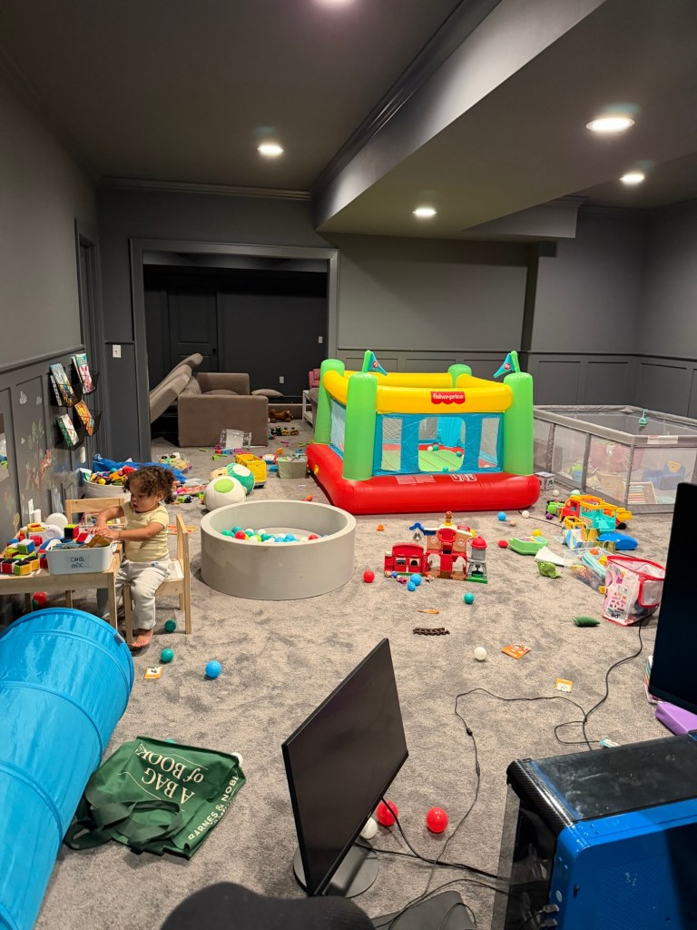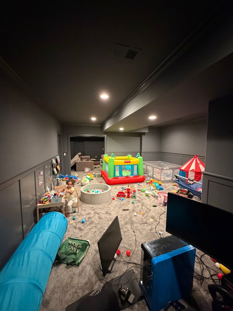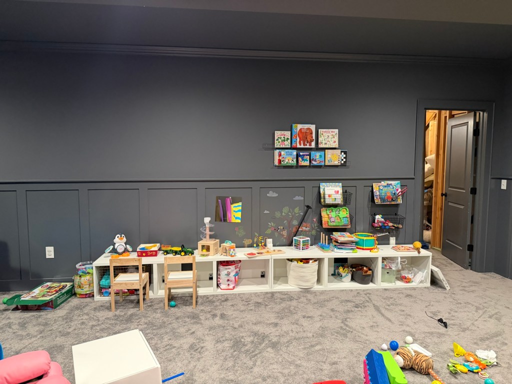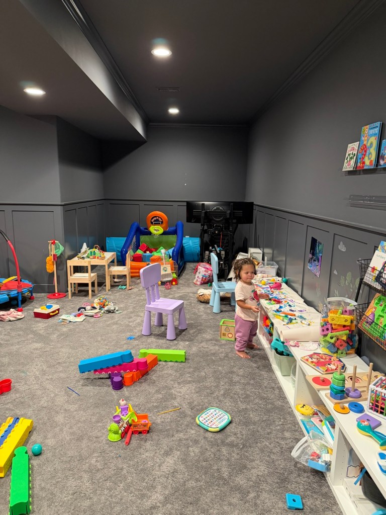 Just trying to be consistent this year with posting. I’m working on another room. The basement. I’m not sure what I’m going to do with it yet but I have some ideas. Here’s what I currently have going on. This room has been through so much trial and error (in regard to toys and organization). I’m never happy with it. Eventually I’ll figure out what it’ll be but for now, enjoy my disaster.